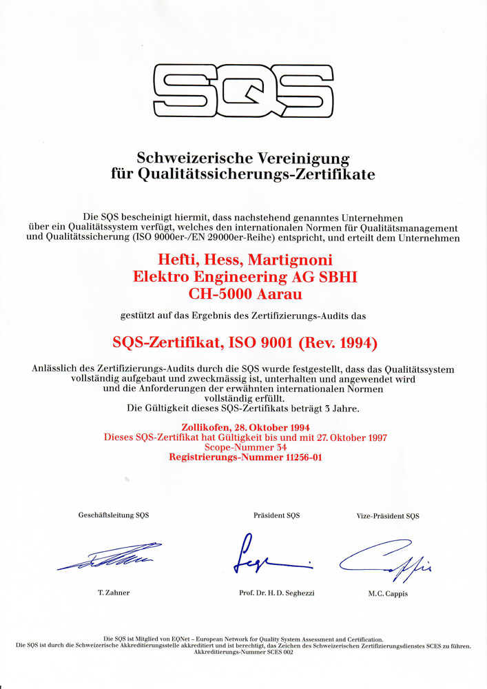 Als erstes Elektroingenieurbüro der Schweiz erlangt HHM das SQS-Zertifikat nach ISO 9001. Die Kosten für die Zertifizierungen lagen nicht wie budgetiert bei CHF 150’000, sondern bei CHF 384’000.