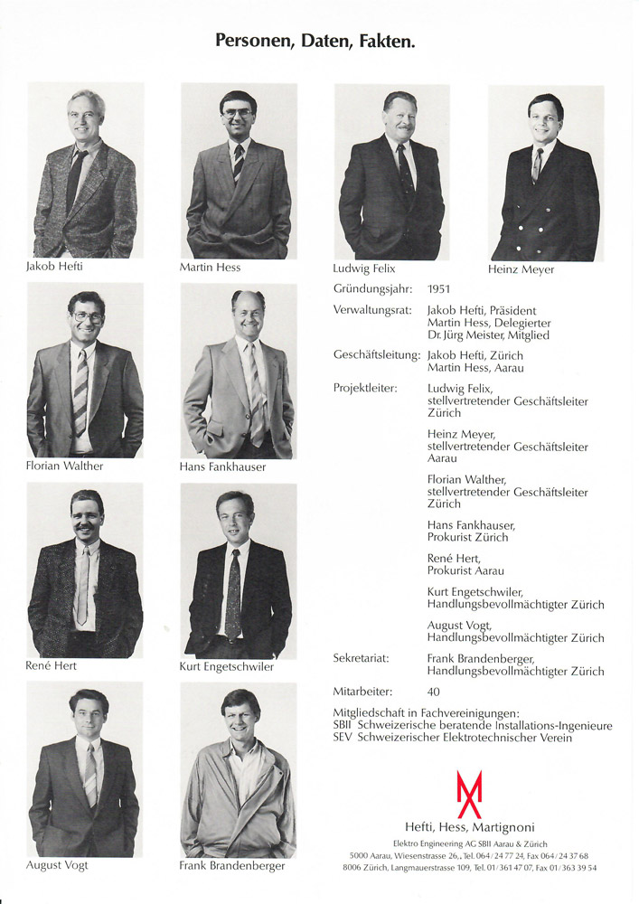 Die Umfirmierung zu «Hefti, Hess, Martignoni Elektro-Engineering AG» wird u.a. mit ganzseitigen NZZ-Inseraten gefeiert. Das waren noch Zeiten!