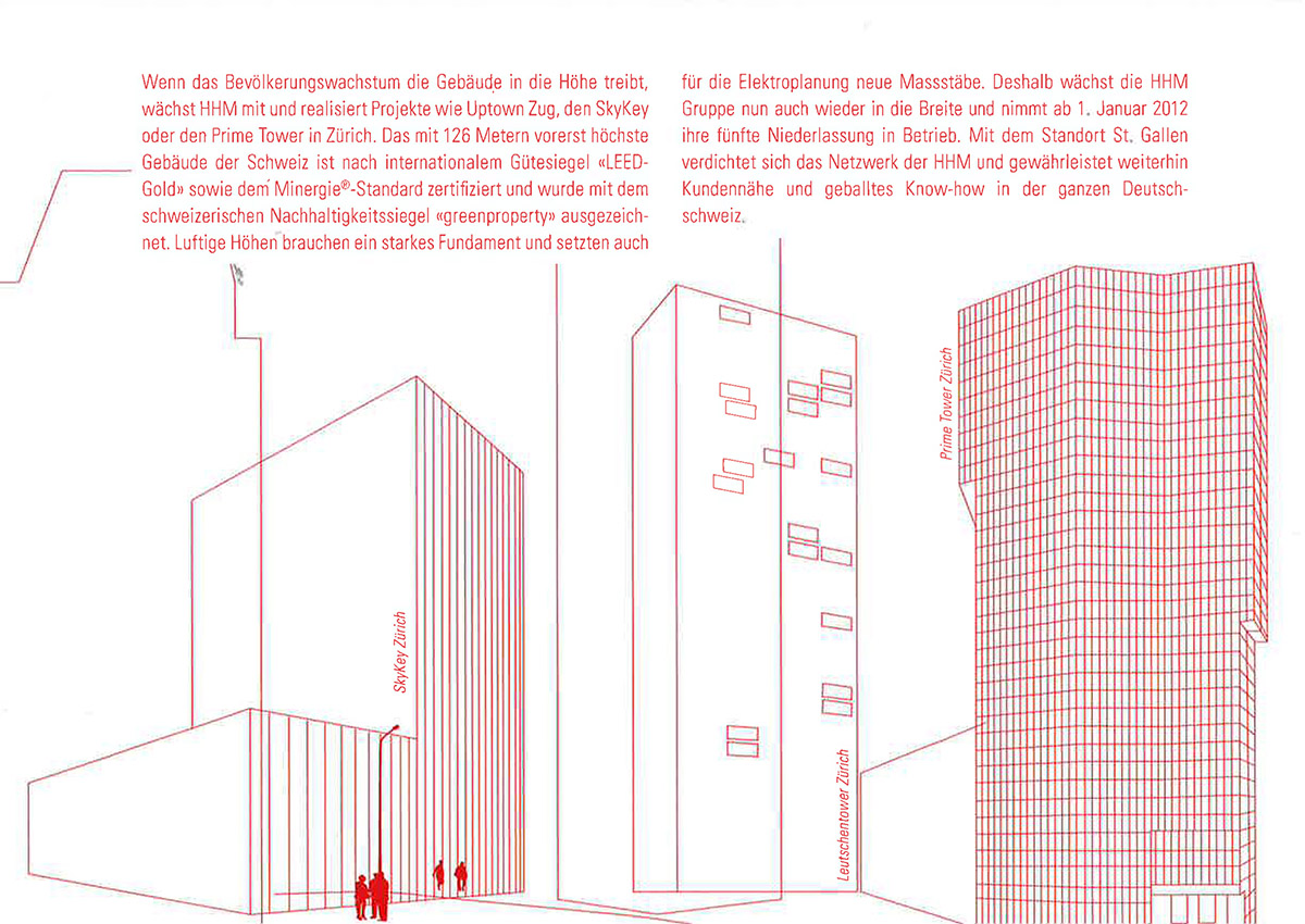 HHM hat immer in der ersten Liga mitgespielt und Projekte mit nationaler Ausstrahlung realisieren dürfen. Wir geniessen das Vertrauen von innovativen Architekten und Bauherren. So wurden mit HHM Beteiligung das höchste Hochhaus der Schweiz und das erste Fussball-Stadion der neuen Generation realisiert. Leuchtturm-Charakter hatten auch die eingesetzten Technologien, die nicht selten HHM-Mitarbeitende forciert haben. Passion fürs Engineering steht deshalb am Anfang von Projekten mit Strahlkraft. Im Rückblick ist es die Leistung von vielen, von gemeisterten Herausforderungen und gelösten Problemen. Die Erinnerung an schlaflose Nächte mischt sich mit Stolz, zu etwas beigetragen zu haben, das überdauert.
