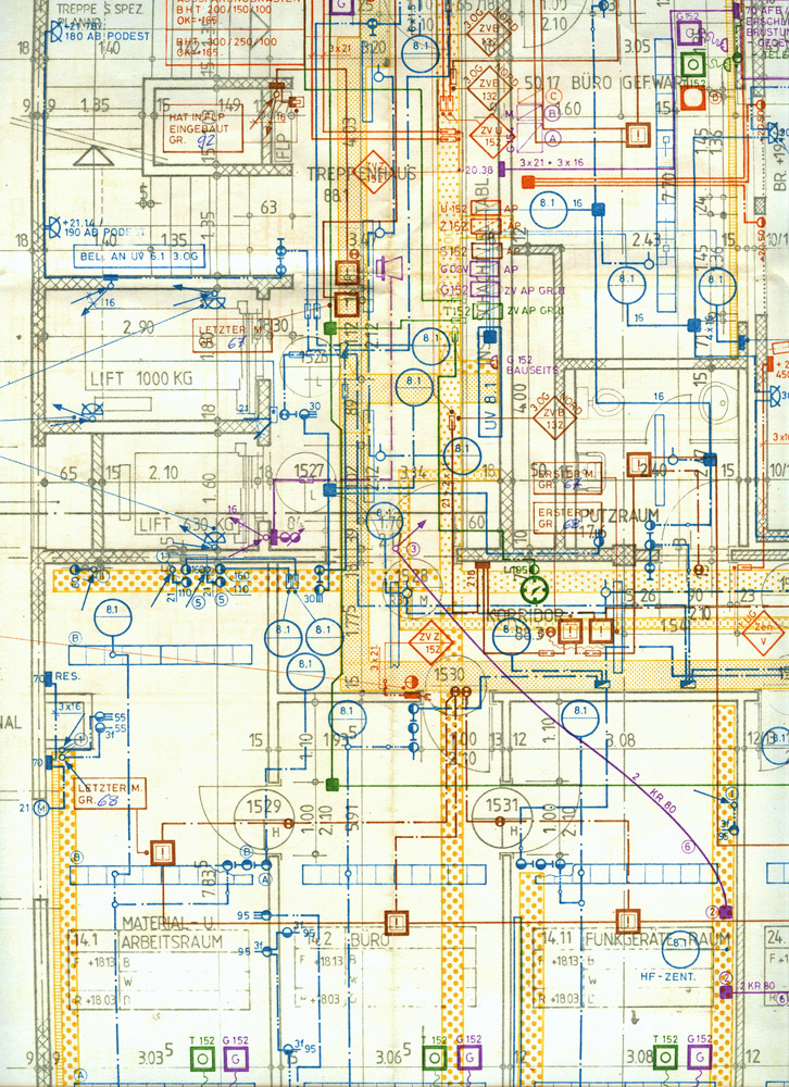 Die Korrespondenz der 70er wurde auf einer mechanischen Schreibmaschine getippt. Rapidographen mit Tusche, Zirkel und Schablonen waren klassische Zeichner-Hilfsmittel. Dispositionen oder Installationen zeichnete man auf Transparentpapier. Mehrfarbige Installationspläne wurden im Plandruckverfahren hergestellt. Der 6-Farben-Druck beanspruchte eine Woche! Ein grosser Schritt war die Einführung des Natels 1978 (ein 20-kg-Kasten für gut CHF 10’000), in den 80ern taucht der Fax auf und Anfang 90er wurden für CHF 429’504 ganze vier CAD-Arbeitsplätze realisiert. Heute ist BIM (Building Information Modeling) Standard in der HHM Gruppe. Und mit BIM kommt eine fun-damentale Zäsur, weil sich die Art und Weise, wie wir planen, nach 70 Jahren verändert.